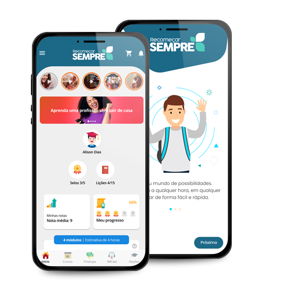 Após sua aprovação no curso, você pode estudar no aplicativo Recomeçar Sempre